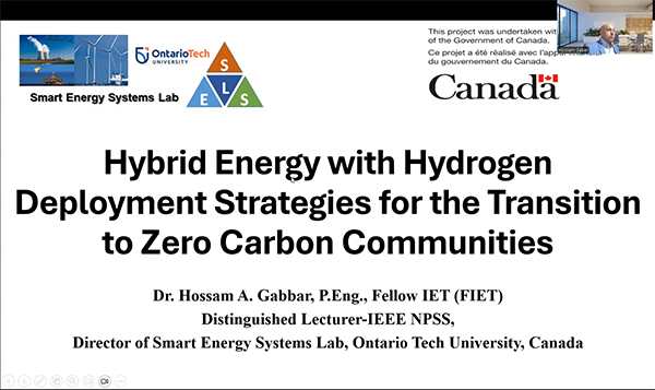 Prof. Hossam A. Gabbar from Ontario Tech University, Canada, addressed the topic of Hybrid Energy with Hydrogen Deployment Strategies for the Transitionto Zero Carbon Communities.